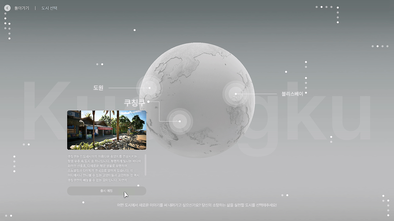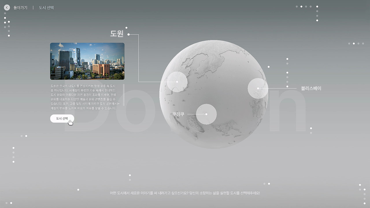 조이가 살게 될 도시 선택을 하게 된다.