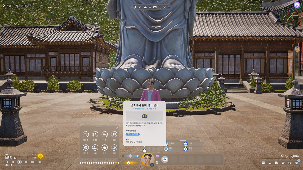어릴 때 잠깐 심즈을 해봤지만, 진짜 아주 잠깐이라 인생 시뮬레이션 게임은 거의 첫 경험이나 마찬가지인데, 그래서 그런지 하는 내내 우왕좌왕 헤매고 난리도 아니었다. 아직도 뭘 어떻게 하면 좋을지 감이 안 잡혀서 좀 곤란한데, 다음 접속 시에는 가이드 같은 걸 좀 더 다시 읽어보고 그래야 할 듯.