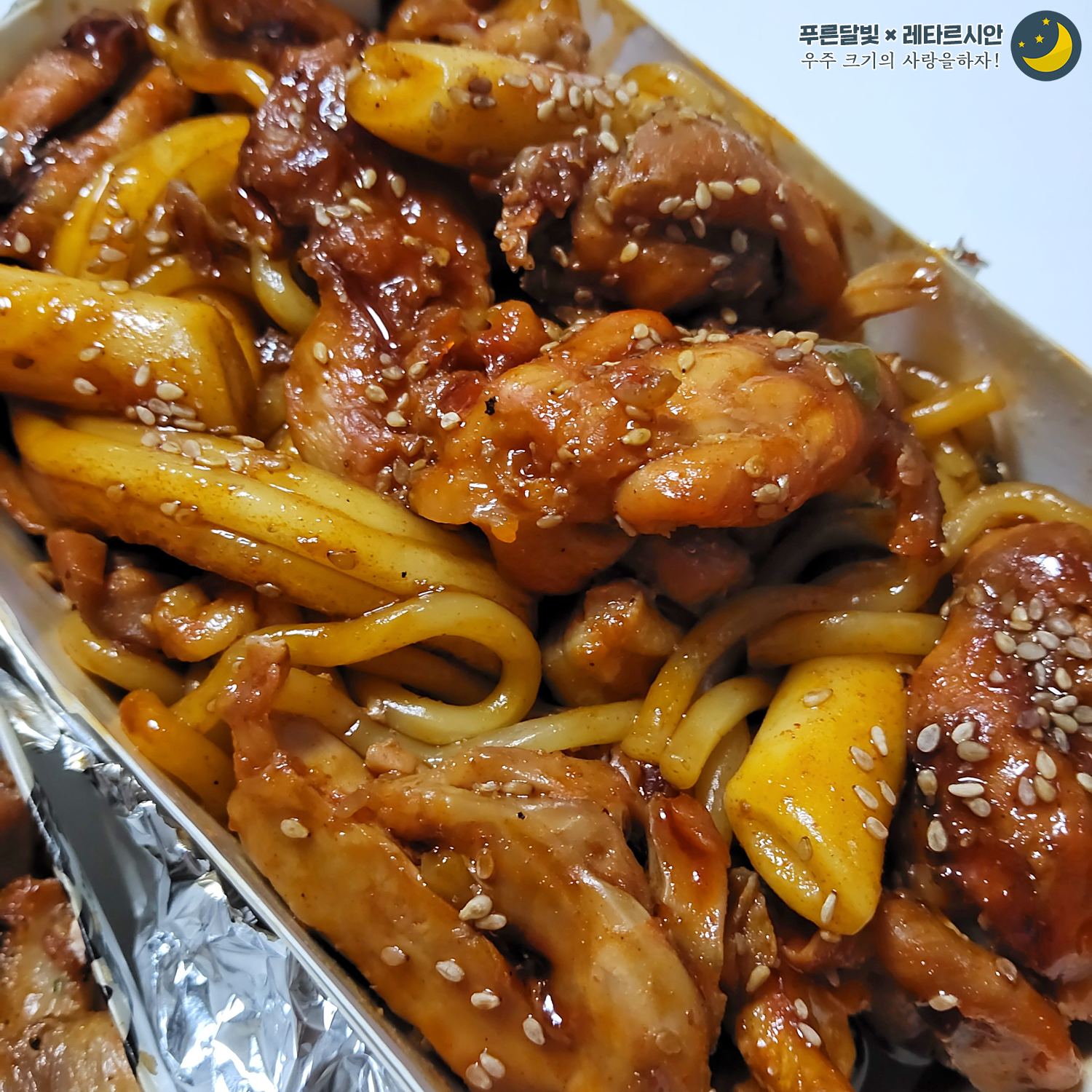 동근이숯불두마리치킨 : 순살숯불양념에 우동 사리, 거기에 분모자 추가 필수!