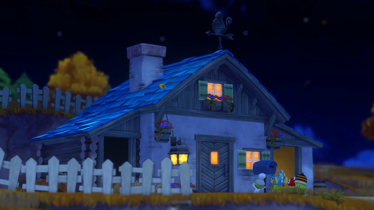 하루와 유리스의 보금자리 앞에서 코로보클 친구들이 모여 신나게 춤을 추고 있다.
