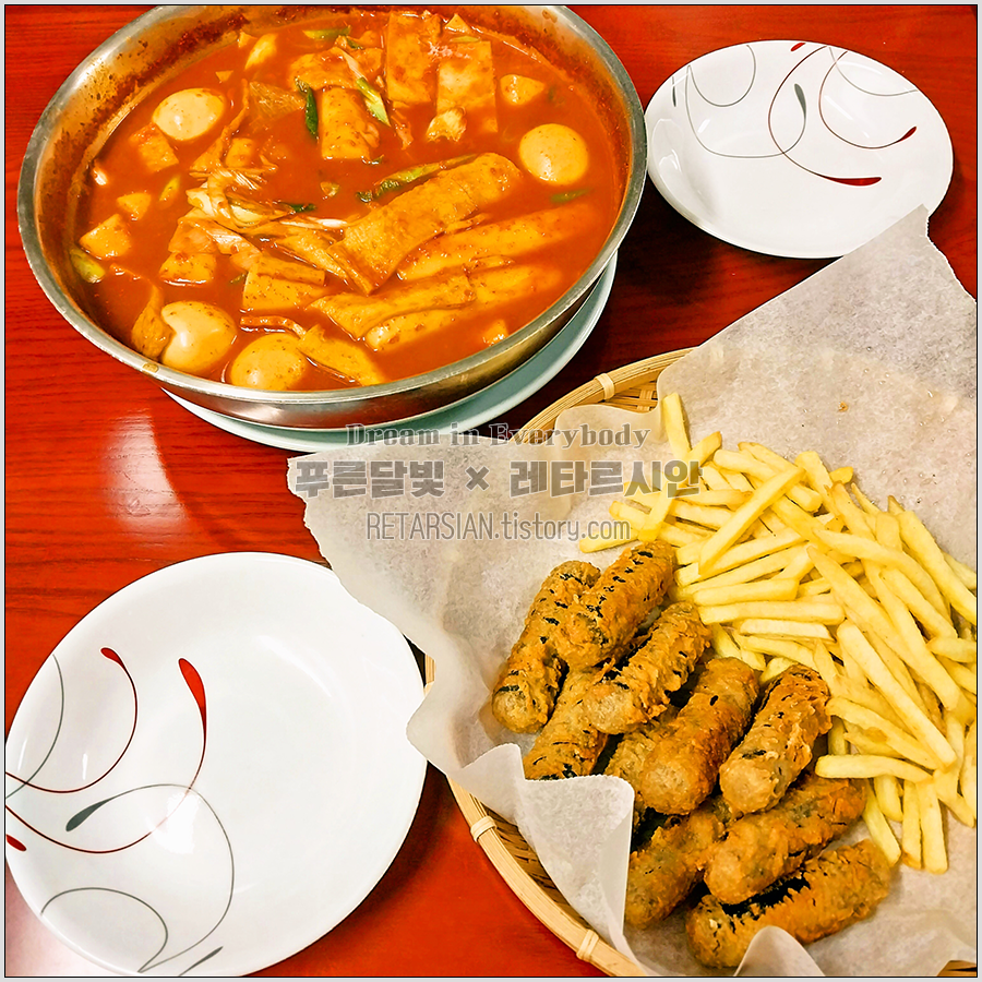 이번엔 김말이튀김과 감자튀김이 사이드메뉴였던 날의 떡볶이 한 상.