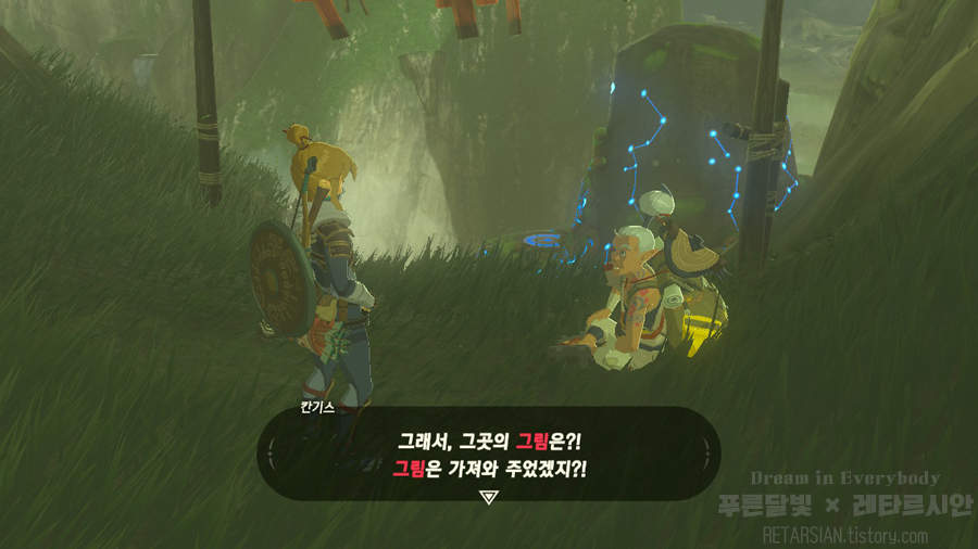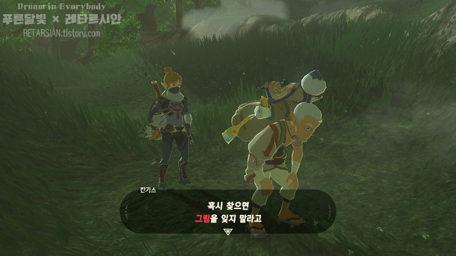 처음에는 함께 찾자며 칸기스가 앞서 달려 나가고 링크는 그 뒤를 쫓아가면 된다.