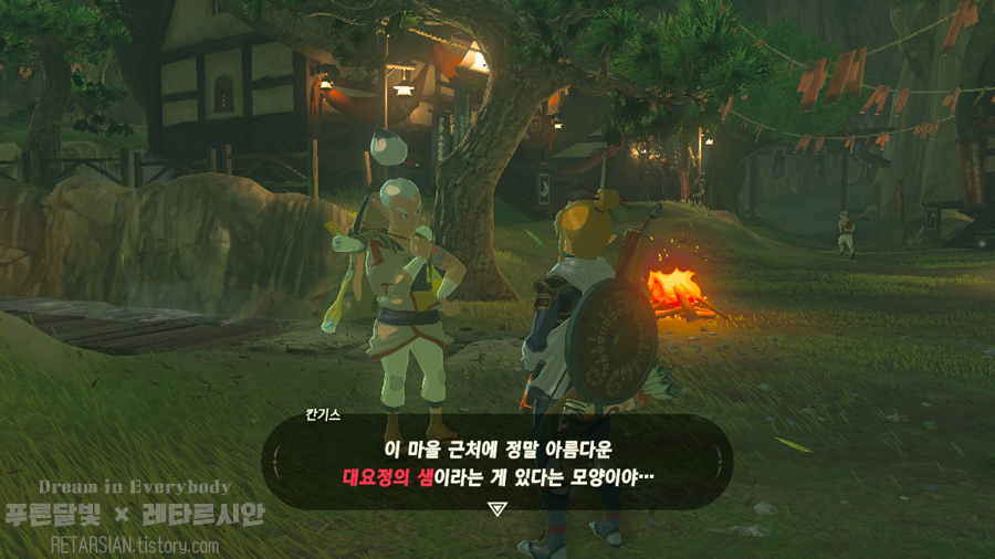 기대했던 것과는 다른 모습에 약간 실망한 듯한 칸기스지만, 어쨌든 이것으로 메인 챌린지 중 하나인 요정의 샘 찾기는 완료되었고 그 대가로 칸기스는 앞으로 만나는 족족 젤다 공주가 찍어둔 사진 속 장소에 대한 힌트를 주기로.