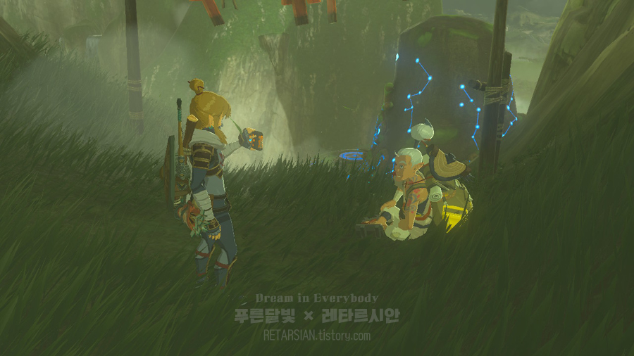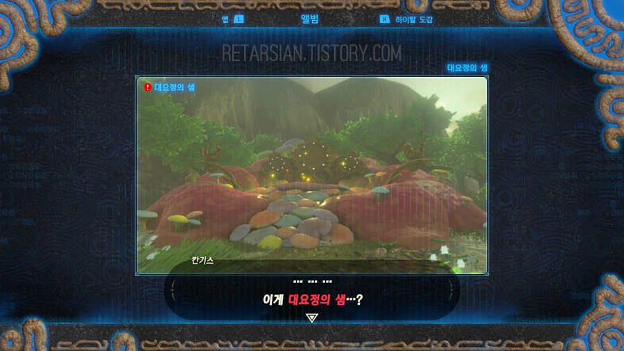그렇다. 이 챌린지를 완수하기 위해서는 우선적으로 하테노 마을의 하테노 고대 연구소에 들러 시커 스톤을 수리해 사진기를 복구해야만 했던 것이다. ── 그렇게 링크는 혼자서 대요정의 샘이 있는 곳까지 달려가 사진기로