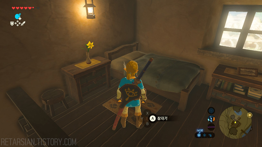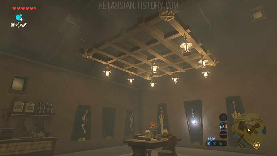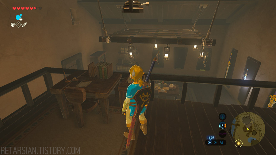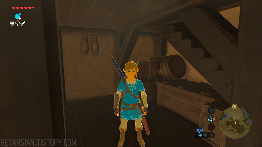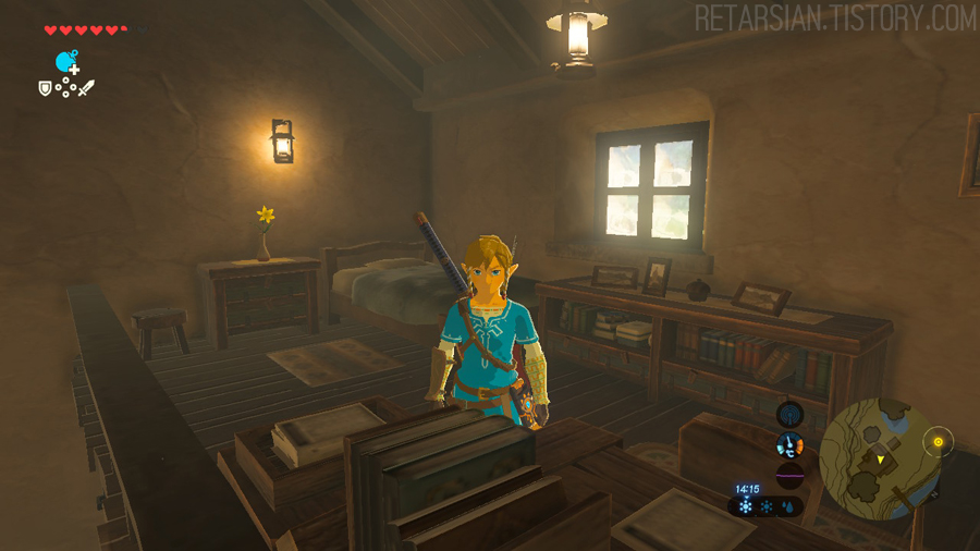 사실, 얼핏 주워들은 얘기지만, 이 빈집이 사실은 100년 전 링크가 젤다 공주의 호위기사로 하이랄 성에 가기 전까지 실제로 살던 집이라는 설을 봤던 것 같다. 그게 진짜인지 아닌지는 자세히 알아보지 않았지만, 카슨이 분명히 ‘여기 살던 사람이 성에서 일하게 되고 나서 그 후로 쭈욱 빈 집이었다’고 한 것도 그렇고. 그럴듯한 설인 듯하다.