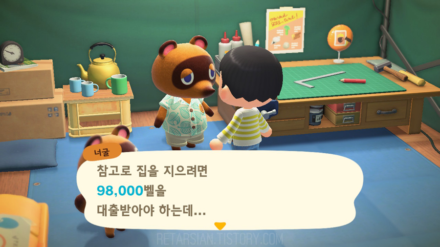 문제는 처음 이주 관련 등의 빚은 마일로 갚는 파격적인 배려를 해줬다면, 이번 집 건축 관련해서는 가차 없이 돈으로 갚으라고 선을 긋더라. ── 뭔가 단위 자체도 엄청나게 펄쩍 뛴 느낌인데, 마일이 아닌 벨(돈)로 갚으라 하니 앞날이 캄캄해지는 기분.
