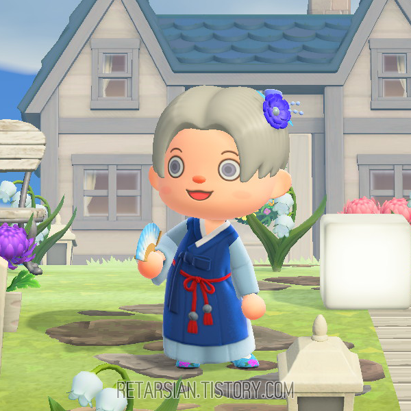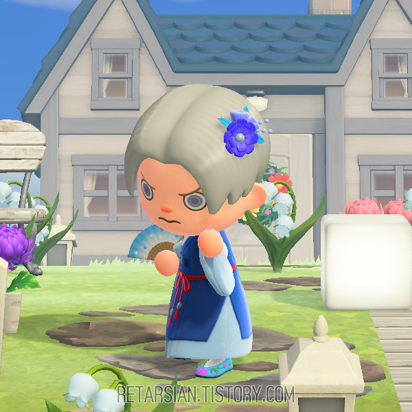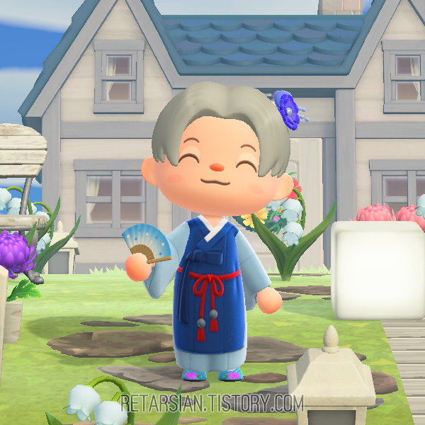 아직 내가 구하지 못한 것인지, 아니면 모동숲에 구현된 건지 확실치 않은데, 화려한 머리핀 대신 갓을 씌워주고 싶었고, 접는 양말은 진짜… 버선이 없어서 맨발보다는 낫겠다 싶어 그냥 신긴 게 접는 양말이었다. 게다가 태사혜가 없어서 선택한 게 자수 구두…… 참… 비극이 따로 없다… OTL