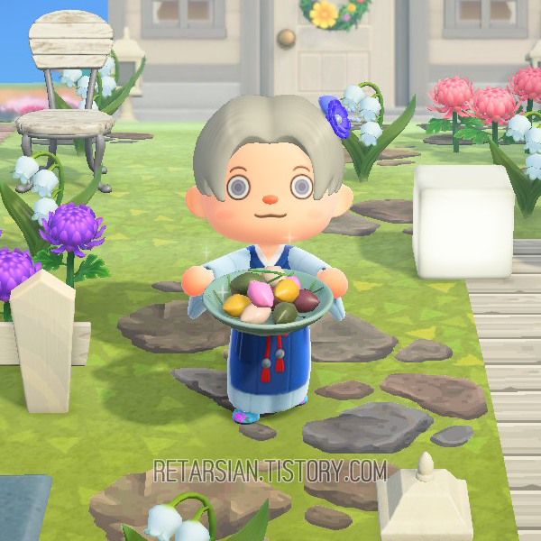 ……다만, 모동숲에서 구한 의류만으로 한복을 제대로 꾸미기에는 여러모로 부족한 게 많아서 아쉬운 대로 대체한 게 좀 많다.