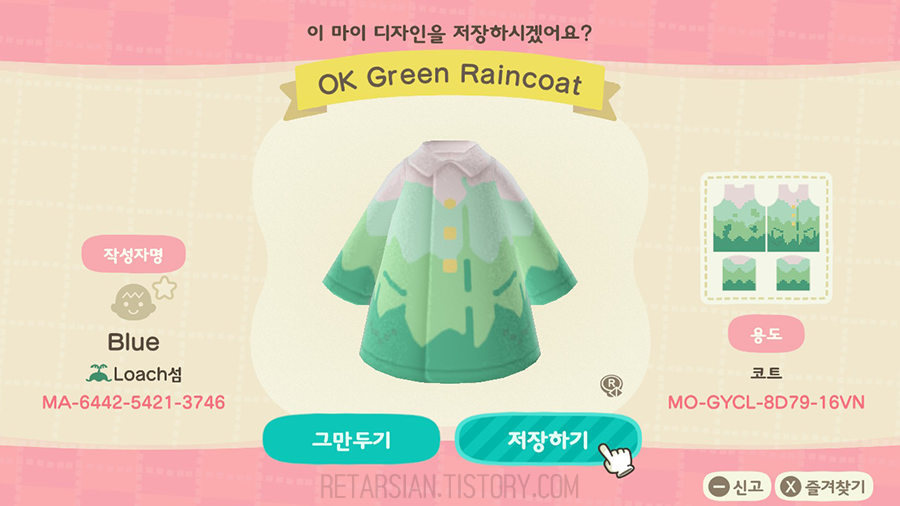 ■ 상의 : 코트 마이 디자인 (OK Green Raincoat)