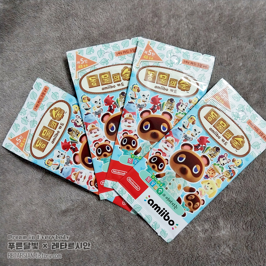 이번에는 모동숲 아미보 카드 3탄에서 넷, 5탄에서 셋을 샀다.