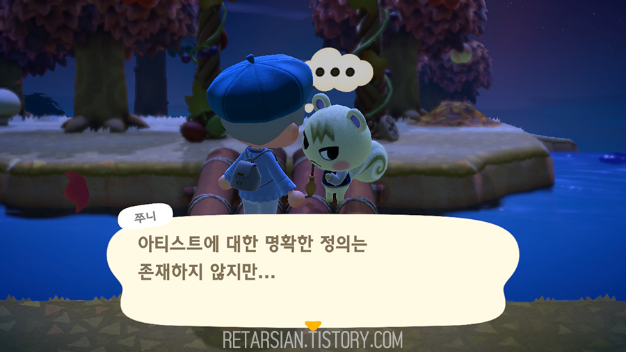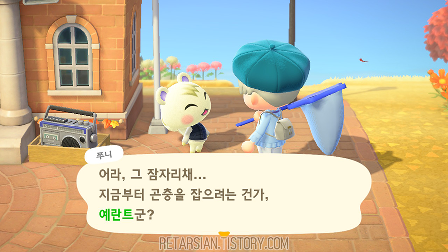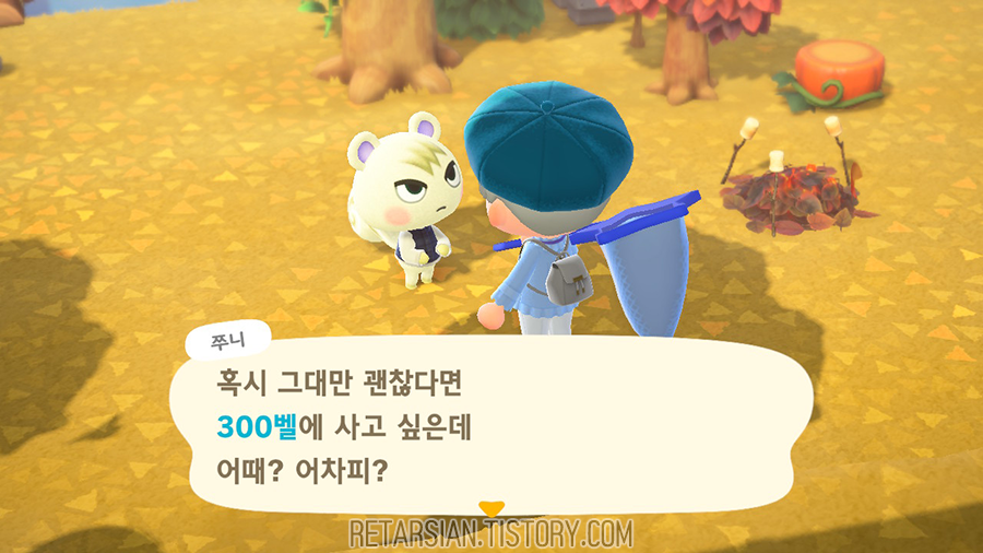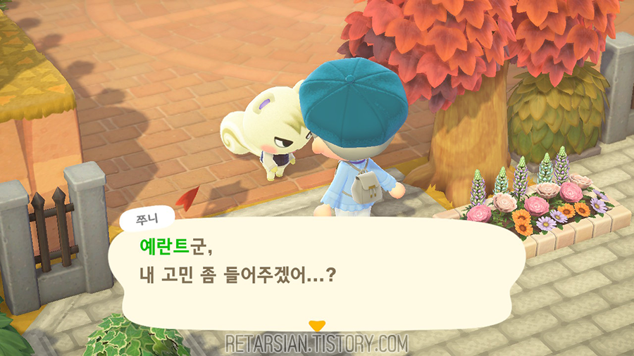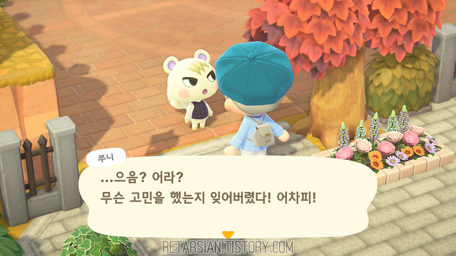 그래서 아침에 이런 식으로 헤어진 게(?) 너무 아쉬워 어제 온종일 짬짬이 모동숲을 켜면, 그때마다 쭈니 를 마주치면 바로 다가가 말을 걸어댔다.