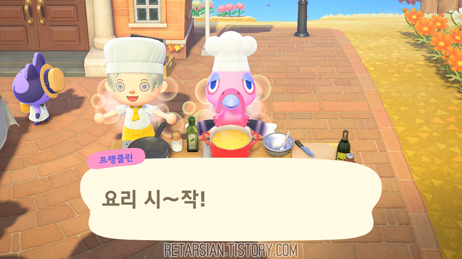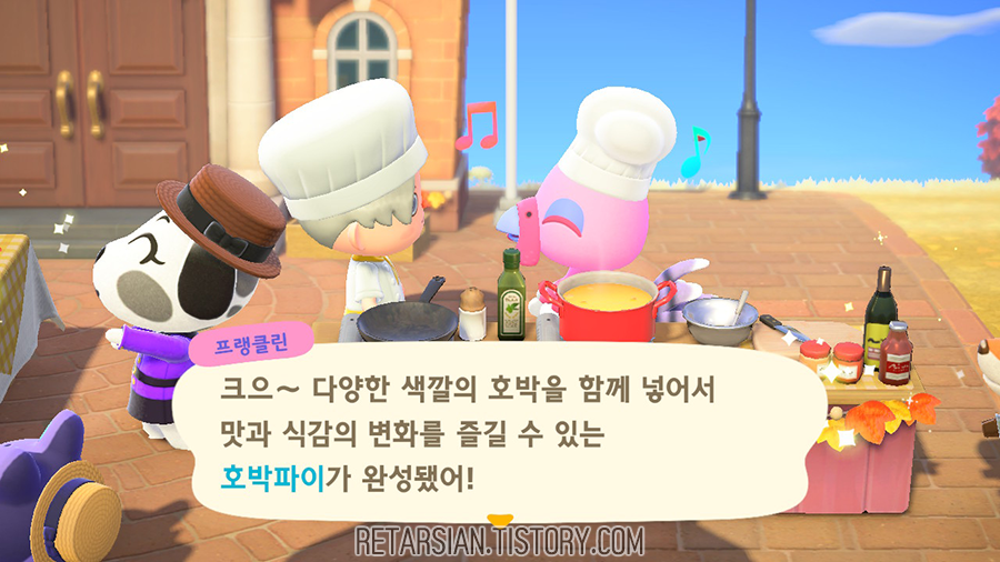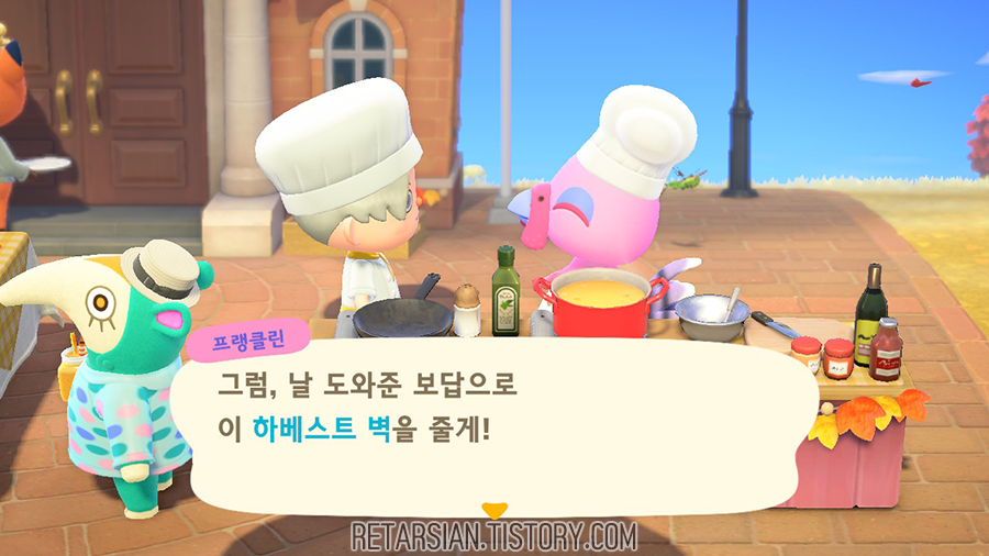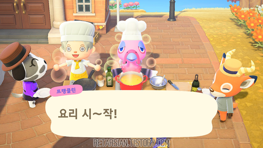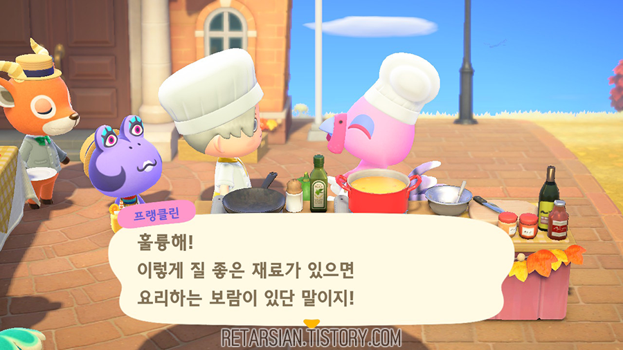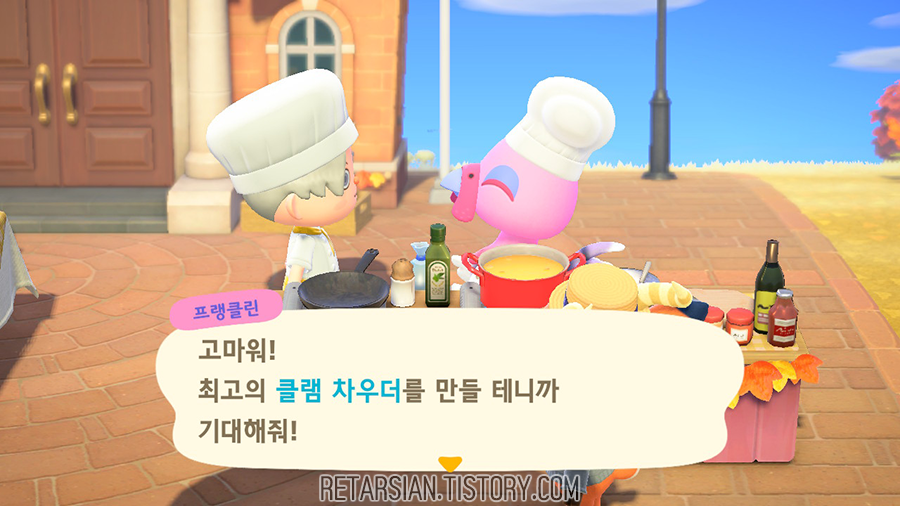 모여봐요 동물의 숲 바지락 세 개를 구해다 주니 일류 요리사 프랭클린 이 진짜 맛있어 보이는 클램 차우더를 만들어 주었다. 주민들도 모두 박수 치며 엄청 좋아하는 듯해서 좀 뿌듯하긴 한데,