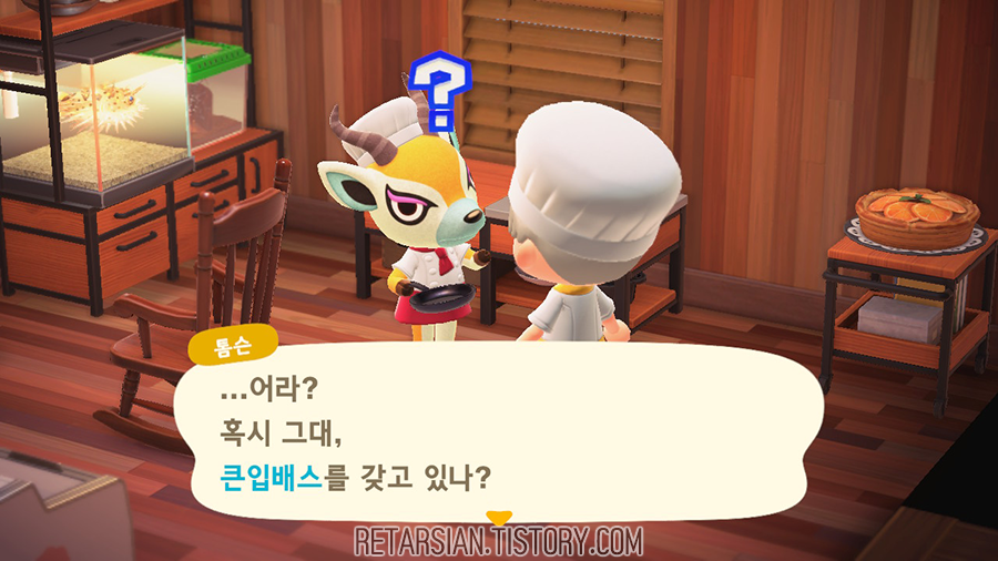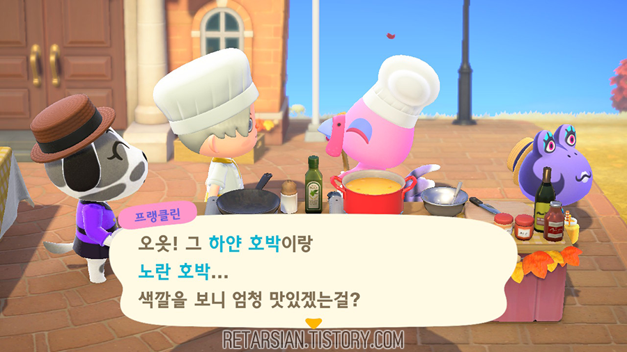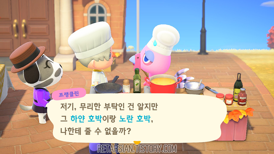 어쨌든, 시베리아 와 부케 에게서 얻은 호박파이의 재료를 건네주기 위해 프랭클린 에게 말을 걸었는데,