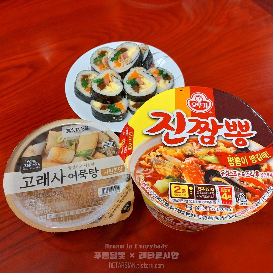 어쨌든, 원래 레시피는 삼호어묵 오뎅한그릇을 사용하는 듯했지만, 마침 들른 편의점이 세븐일레븐이었던 터라 내게 남은 선택지는 고래사 어묵탕밖에 없었다. ……애초에 삼호어묵 보다는 고래사 어묵 쪽이 좀 더 내 취향이기도 했고. 게다가 마침, 세븐일레븐에서는 진짬뽕 컵라면이 2+1 행사 중이기도 해서 그냥 샀다.
