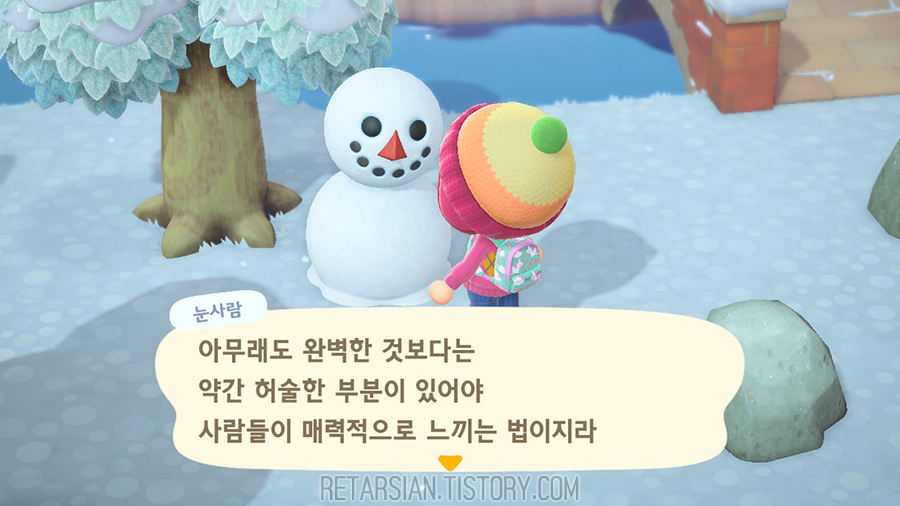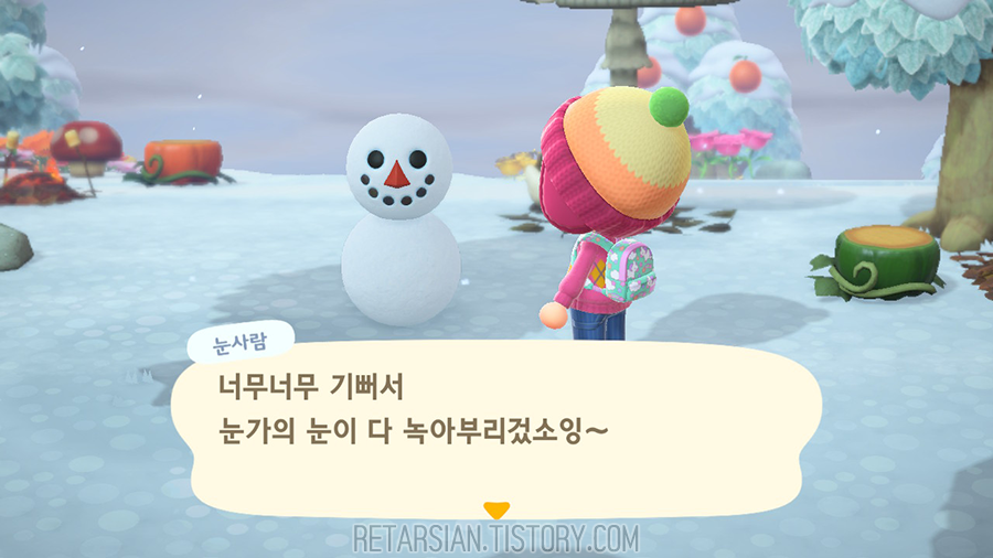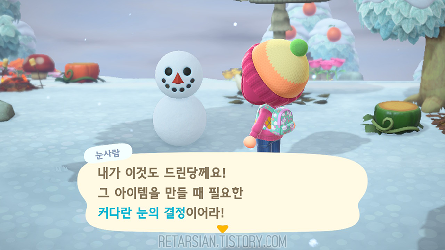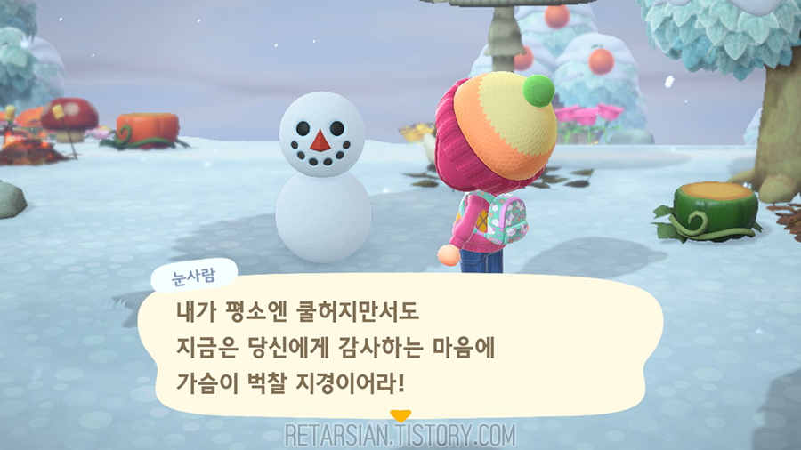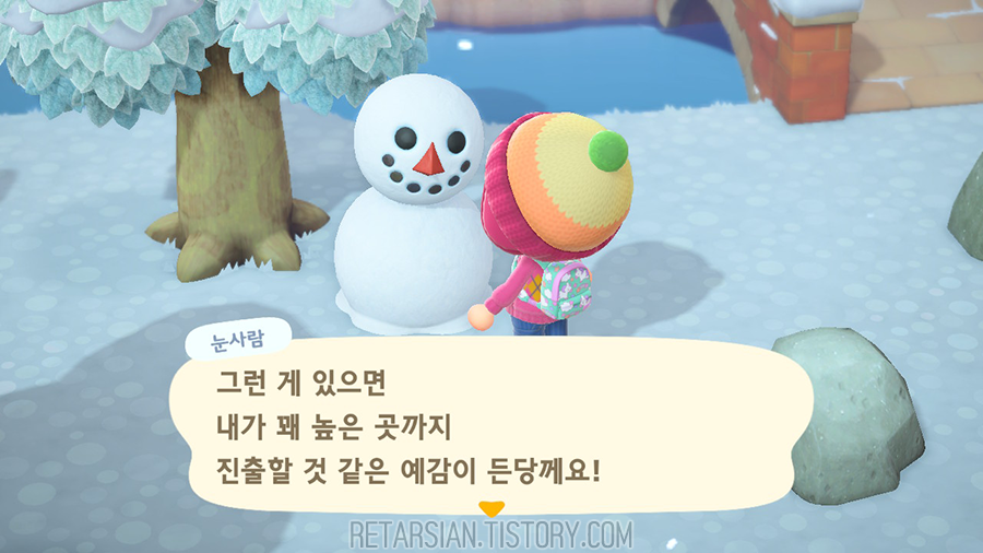 우리 섬 라온제나도가 새하얀 겨울 섬으로 거듭나, 땅 위에 눈덩이가 생성되기 시작한 지 2일 차.