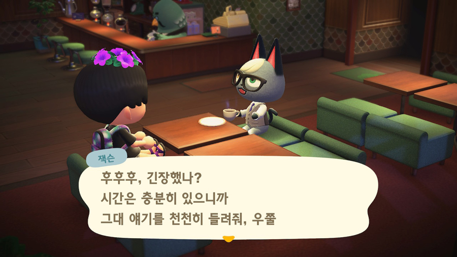 모동숲 특유의 생각보다 많이 부족한 스크립트 양 때문에, 했던 말 또 하고 했던 말 또 하는 잭슨 을 앞에 두고도 그저 하염없이 기쁘고 좋아서 그냥 마주 앉아 계속 말을 걸고 또 걸었던 것 같다. 아… 진짜 이대로 기존의 주민 유지하면서 잭슨 하나만 더 새로운 주민으로 받아들일 수 있는 방법 같은 거 진짜 없나… 으흐흑…