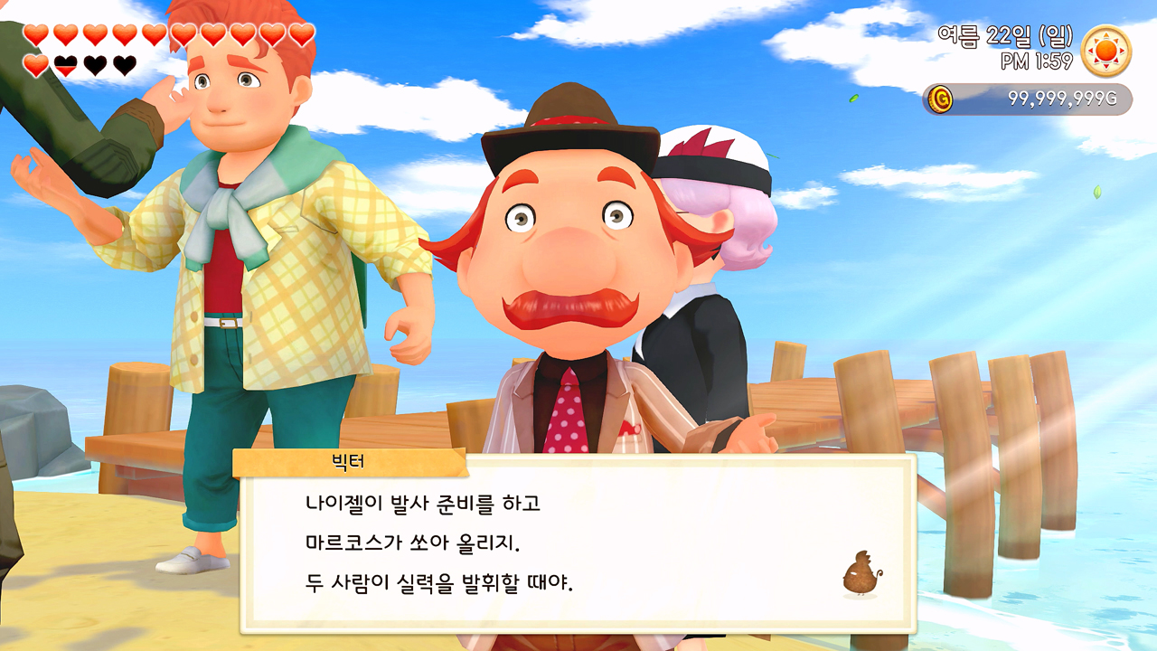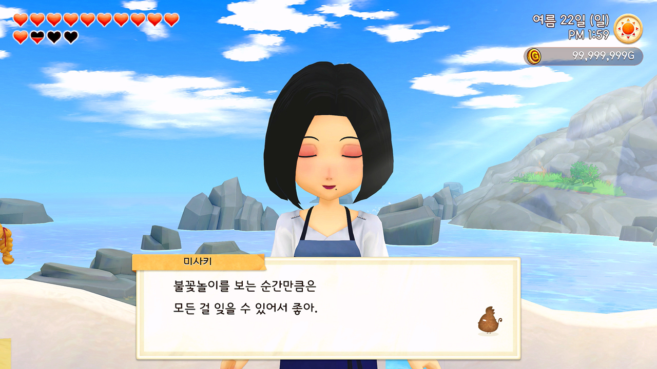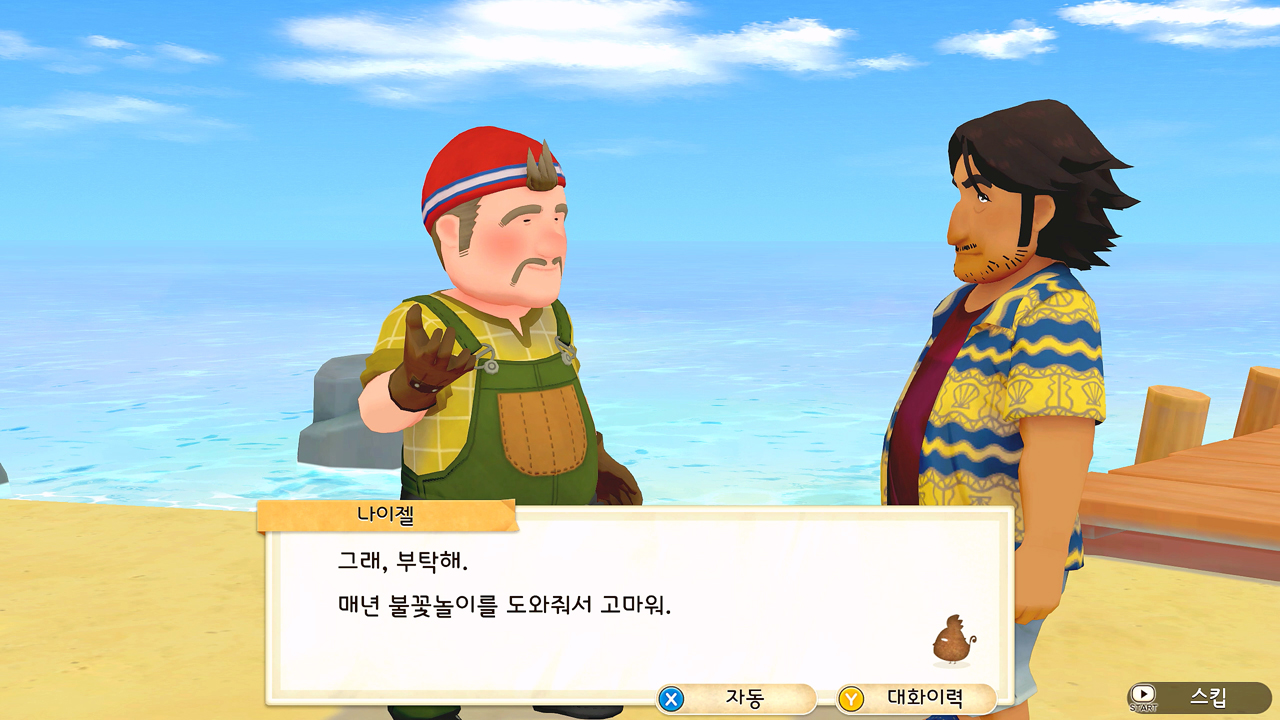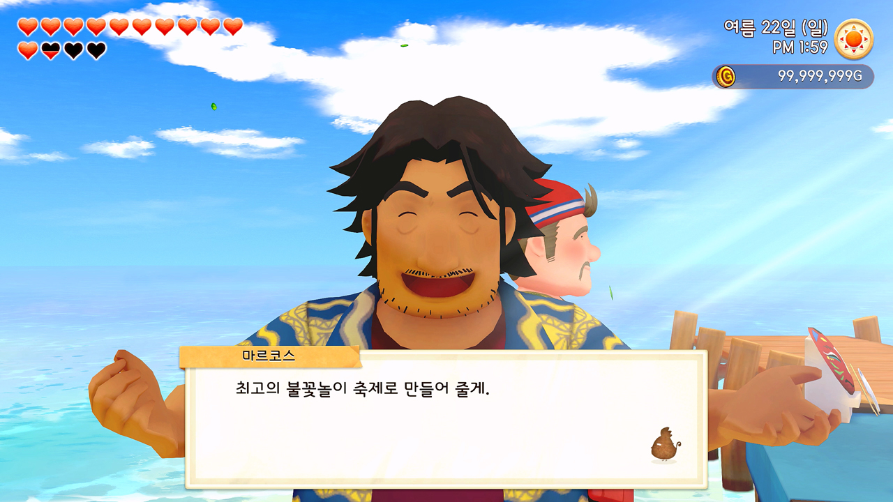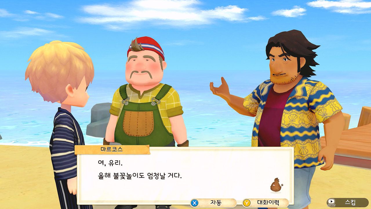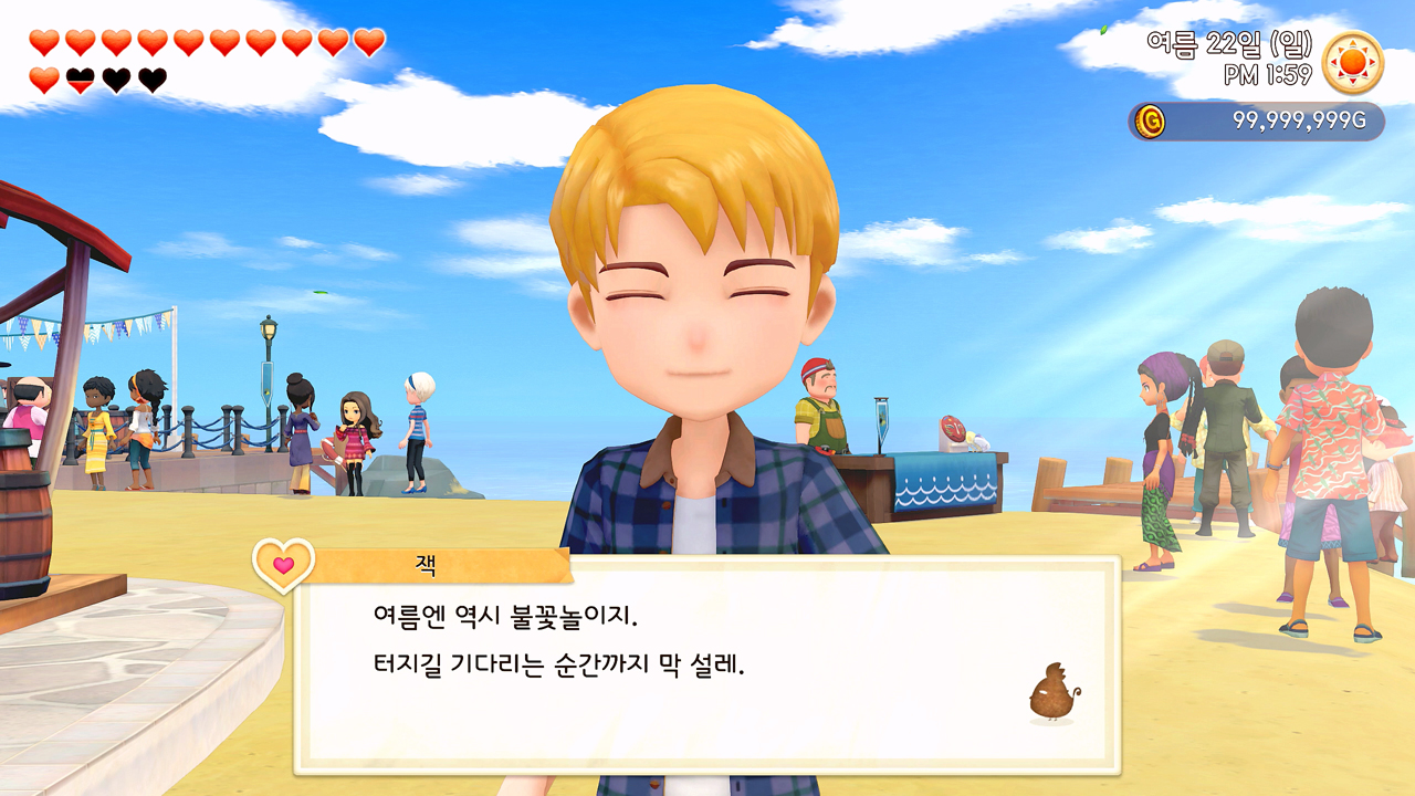 축제 당일 사흘 전에 개최자인 목공소의 나이젤 씨가 일부러 목장까지 찾아와 주인공 유리에게 사실을 미리 알려주기도 했고. 사실… 미리 말하자면, 어쩔 수 없이 유리 홀로 즐겨야만 했던 1년 차 여름의 불꽃놀이 축제는 그다지 재미있지 않았다. 이벤트도 그냥 컷 신으로 짧게 후다닥 지나가 버렸고…