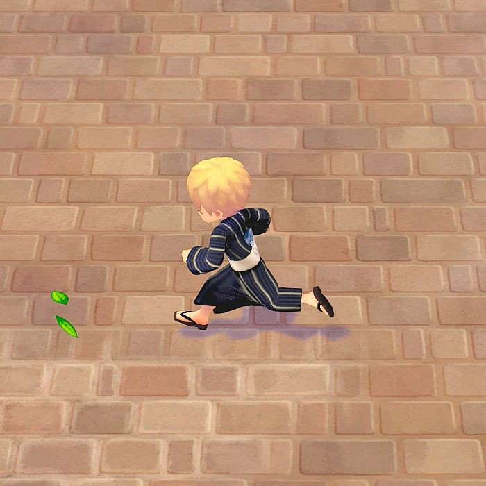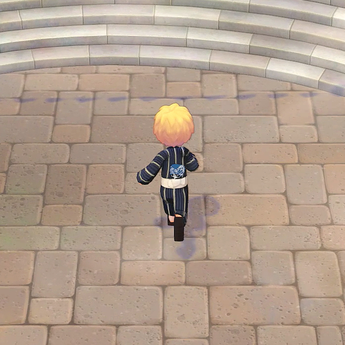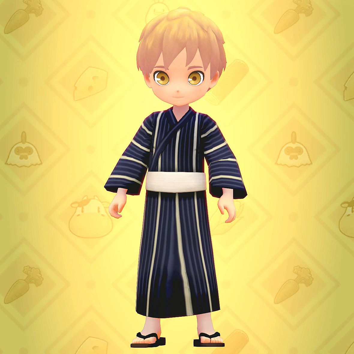 기본 무료 의상 중 하나인, 남색 유카타.