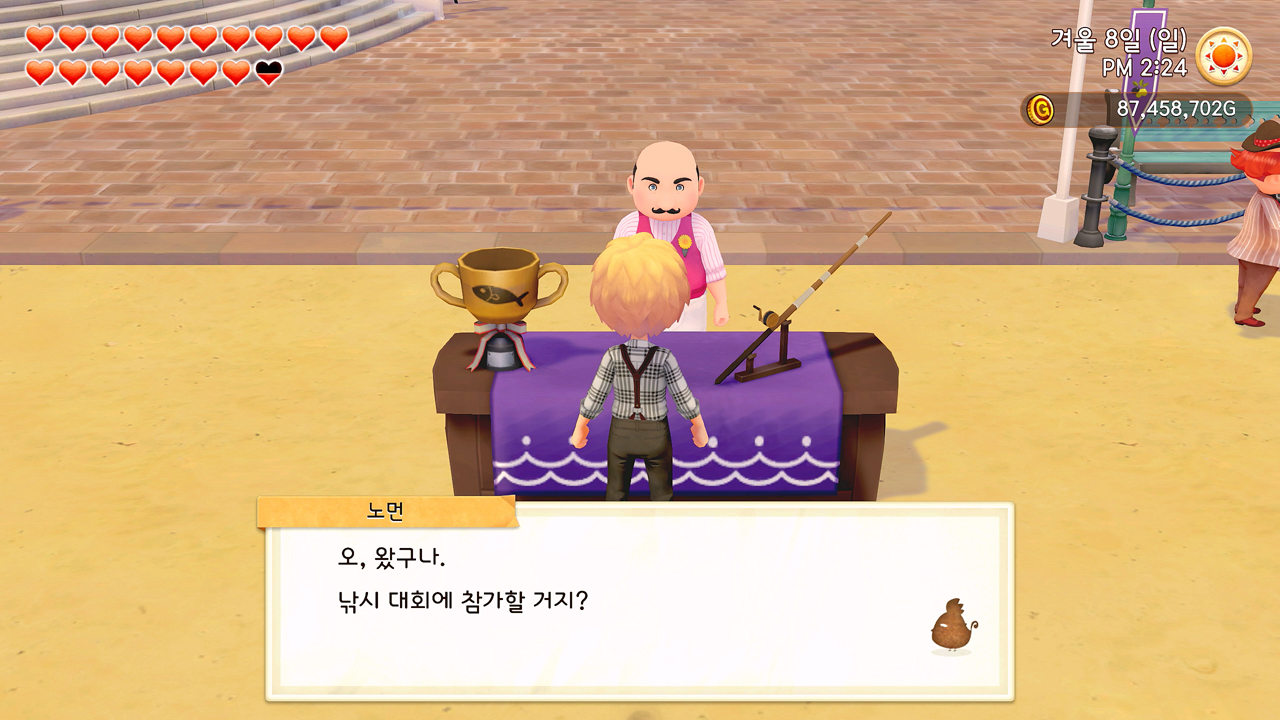 가끔 주민들과 친밀도를 높여서 뜨는 이벤트를 볼 때면, 원래 낚시 최강자는 응우옌 어르신이었는데 이오리가 신흥 강자로 떠오르면서 응우옌 어르신도 최강자의 자리에서 떠밀려 내려온 느낌?