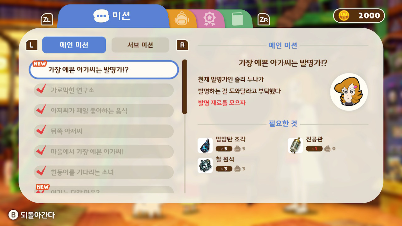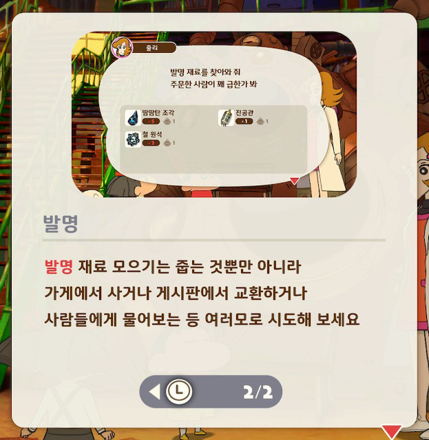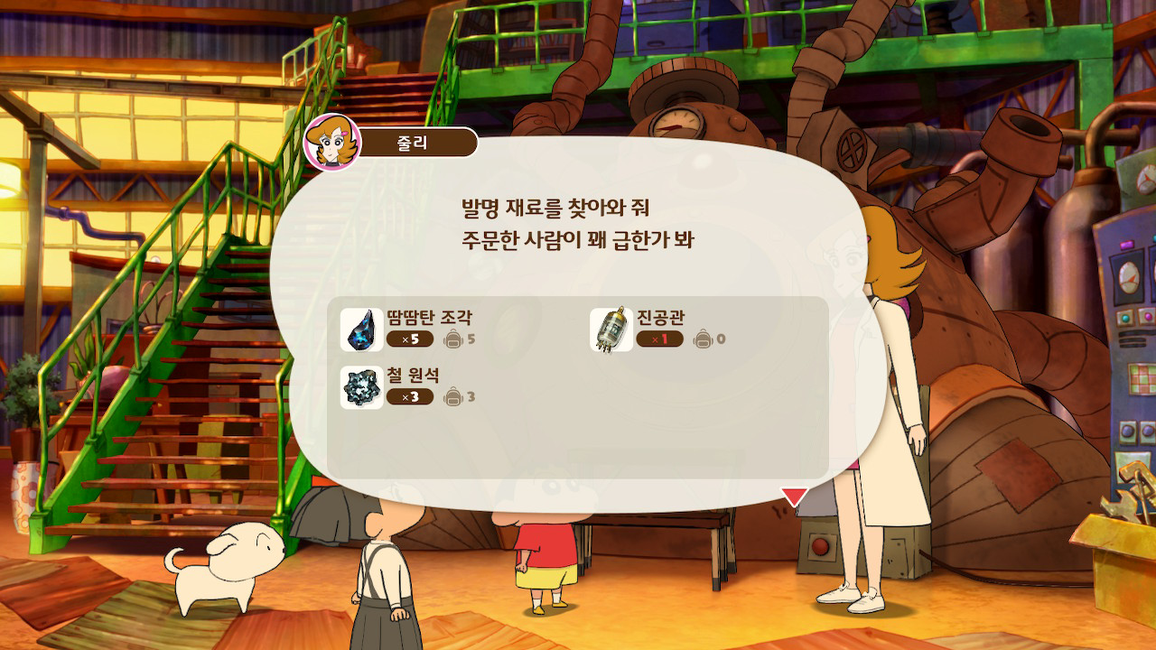 그나저나, 굳이 퀘스트가 아니더라도 이런 재료를 모아 줄리에게 발명해 달라고 하면 뭔가 템을 만들어주는 시스템인가 보다.