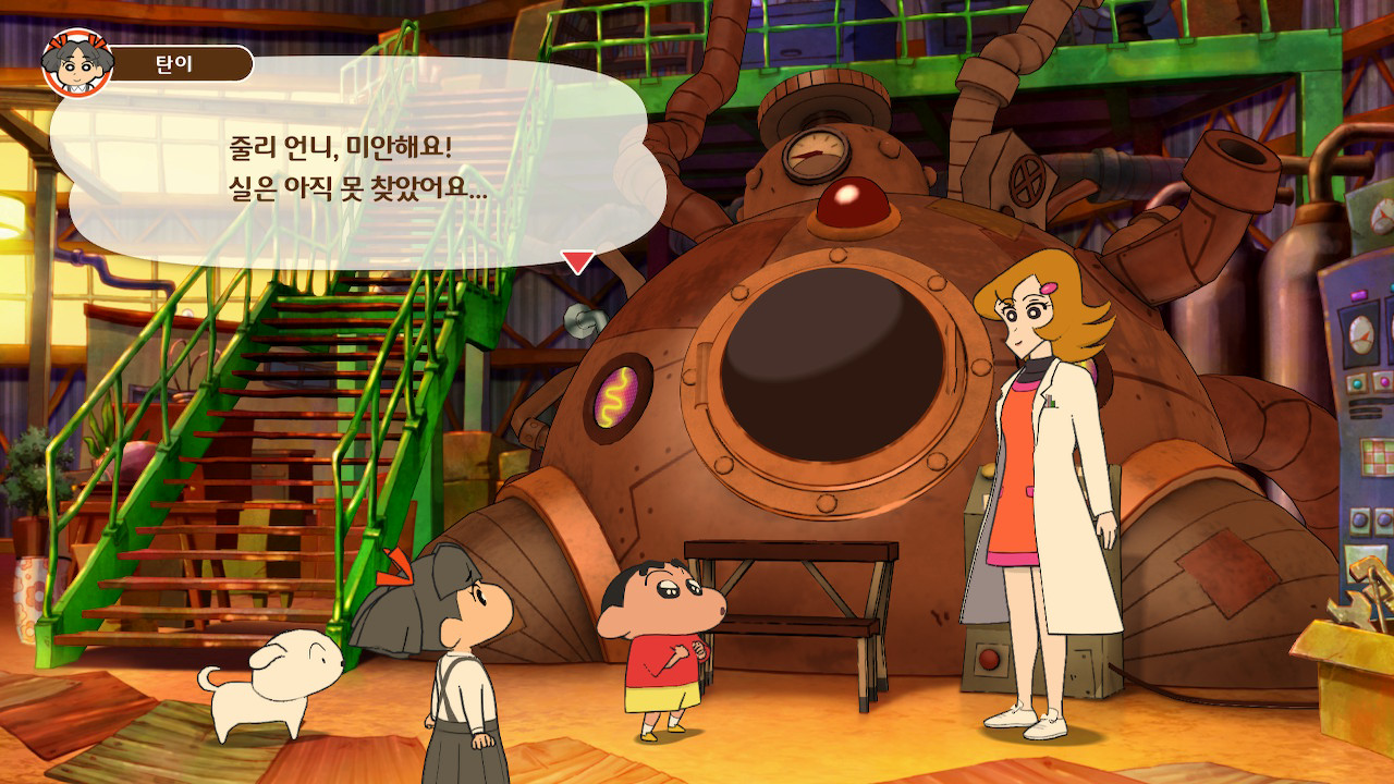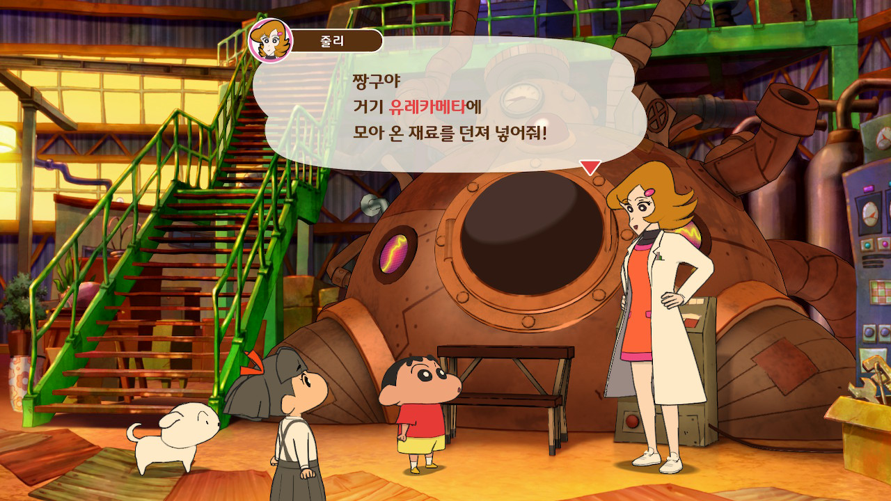 어떻게 구할지 몰라 살짝 곤란했는데, 흰둥이 찬스로 가볍게 구한 진공관을 손에 넣고 짱구와 흰둥이는 다시 줄리의 연구소로.